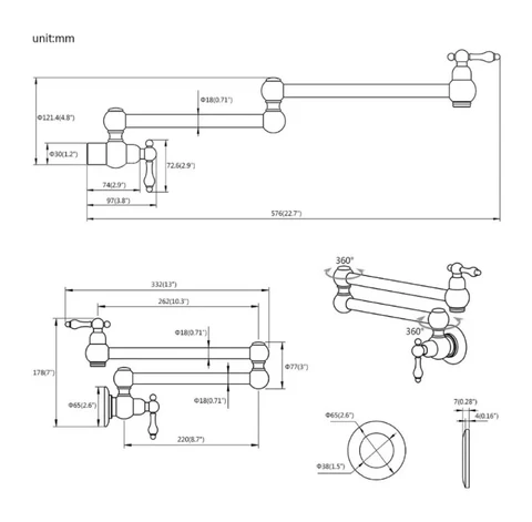 Mounted on your wall above the hob, its dual-swing arms extend up to ~22″, giving you flexible reach when filling large pots or rinsing within the cooking zone.