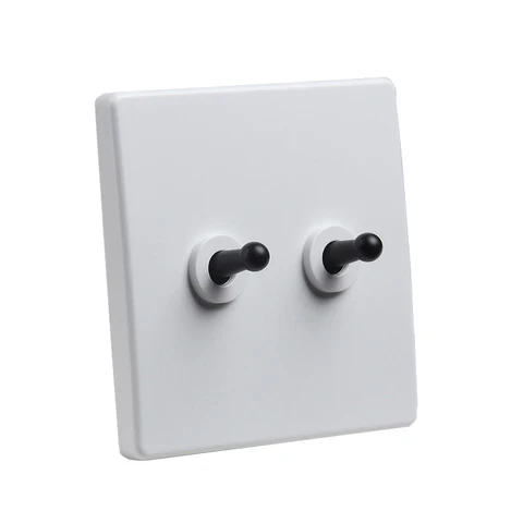 The Ornate – White Light Switch with Black Toggles introduces a refined contrast to sophisticated interiors — a crisp white textured faceplate paired with a bold matte black toggle lever.